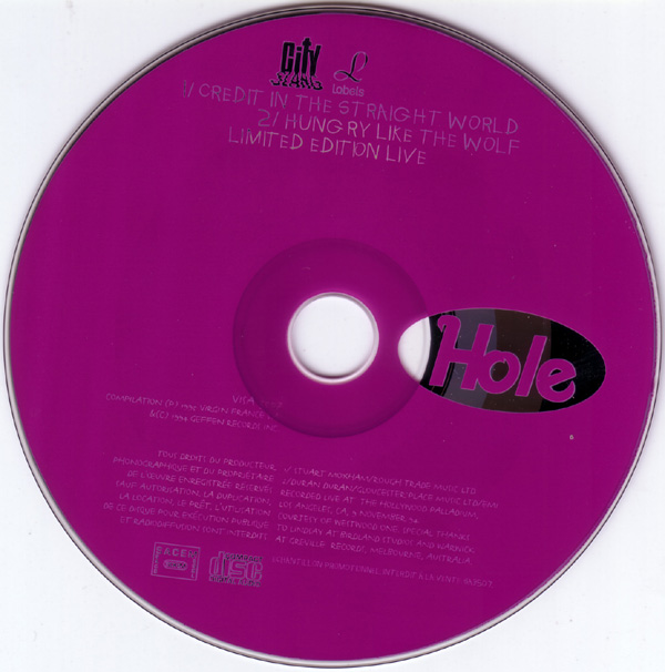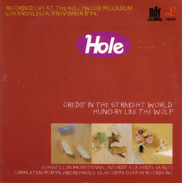 - - - - - - - - - - - - - GENERAL INFO Genre: Label: City Slang Date: 1995(?) coming soon - - - - - - - - - - - - - RELEASED ON CITY SLANG: Format: CD - single - promotion Country of origin: France Release date: 1995? Item number: ? Additional info: Tracks recorded live at the Hollywood Palladium, Los Angeles, CA, 9 November 1994. Track 1 is a cover of a Young Marble Giants song, and track 2 is a cover of a Duran Duran song. Tracklist: 1. Credit In The Straight World 2. Hungry Like The Wolf Pictures: - - - - - - - - - - - - - |